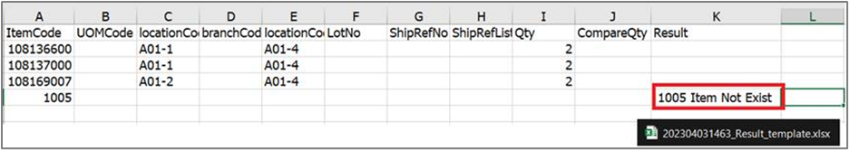กรณีข้อมูล Master File ไม่มีในระบบ จะทำการแจ้งเตือนในไฟล์ Result โดยจะเก็บ Path เดียวกับไฟล์ที่ Import